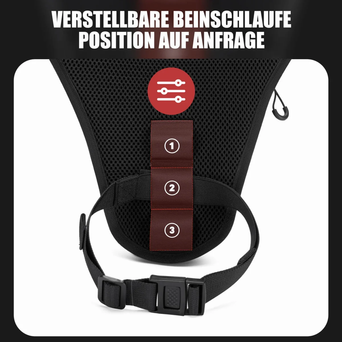 Matière TPU 600D simple face Ceinture Réglable de 15 à 100 cm Sangle de cuisse Réglable de 30 à 70 cm Couleur Noir Capacité Environ 1 L Catégorie Adultes unisexes |