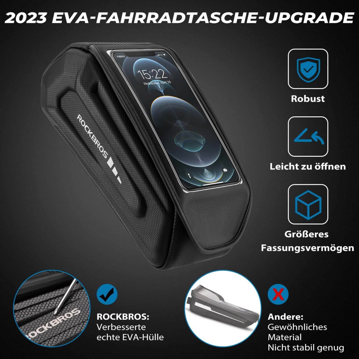Sacoche de vélo étanche, étui pour téléphone portable compatible avec les smartphones à écran tactile de 6,8 pouces, ROCKBROS