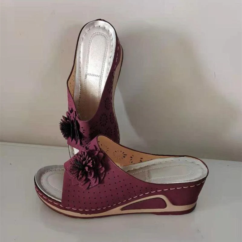 Sandales compensées tressées à motif floral – Respirantes – Grande taille