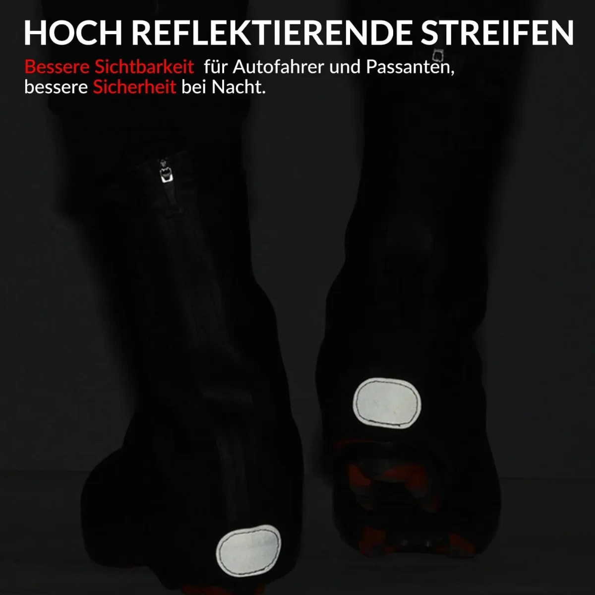 Pratique et sûre :Facile à enfiler et à retirer, cette surchaussure est équipée d’éléments réfléchissants pour une meilleure visibilité dans l’obscurité. Idéale pour les cyclistes en toutes conditions hivernales.