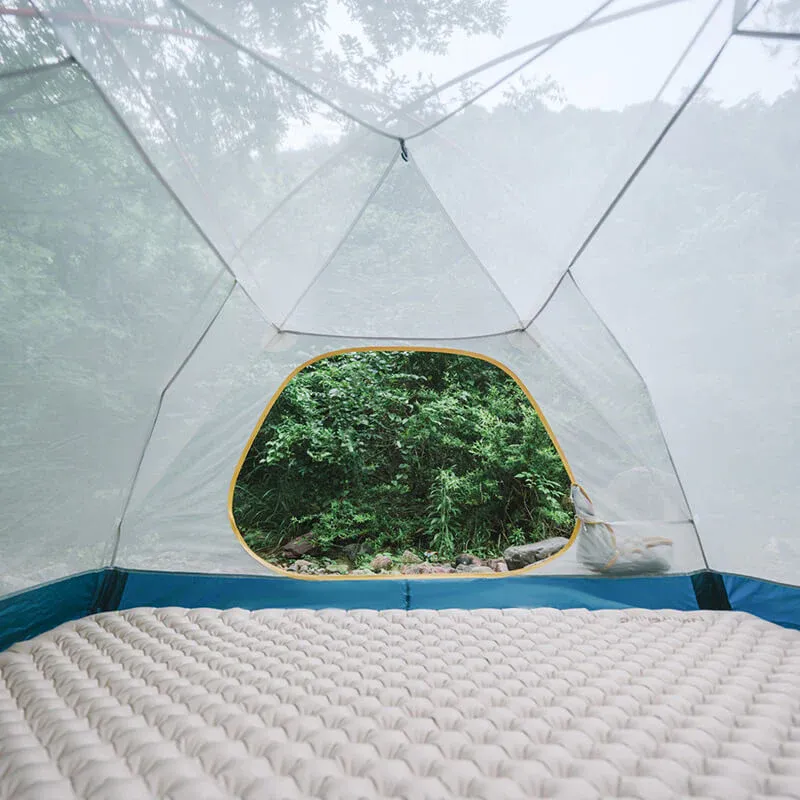 Le double-toit en polyester 210T avec enduction argentée assure une protection fiable contre la pluie (colonne d’eau env. PU2000) et les UV, avec un traitement UPF50+ qui limite l’exposition aux rayons UVA/UVB. Le fond en toile Oxford 150D, enduit PU à haut niveau d’étanchéité, forme une cuve qui remonte sur les côtés pour bloquer les remontées d’eau et l’humidité du sol. La chambre intérieure en tissu respirant et moustiquaire fine combine coupe-vent et ventilation, tout en arrêtant efficacement les insectes. Toutes les coutures exposées sont renforcées et étanchéifiées.