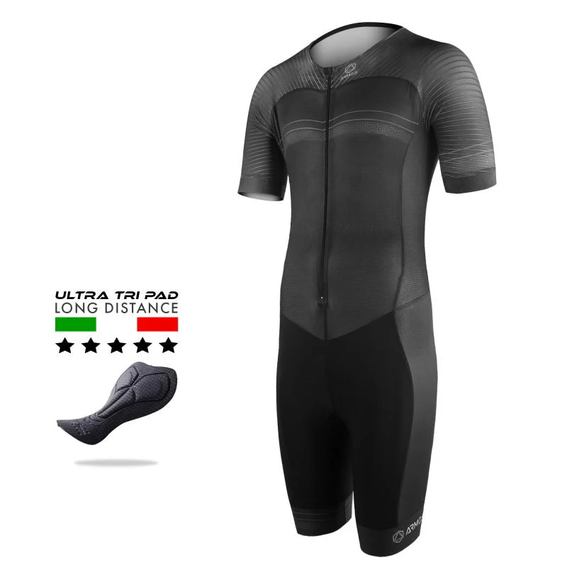 La collection ARMOS Epic a été créée pour les athlètes professionnels et les sportifs les plus exigeants. Dotée des dernières technologies textiles, cette trifonction Pro AERO est ultra aérodynamique afin d’être encore plus performante. Une association de plusieurs tissus perforés rendent ce produit très respirant. Les bandes siliconées tiennent le produit en place en toutes circonstances. Équipée d’une peau Tri Ultra avec plusieurs densités, cette trifonction vous assurera un maximum de confort pendant toute la durée de l’épreuve.