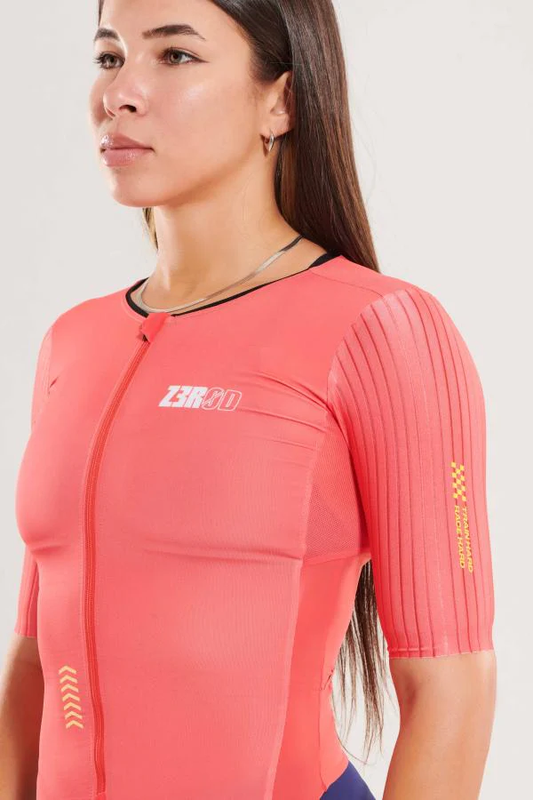 La ttSUIT Z3R0D femme s’adresse aux triathlètes adeptes de la longue distance. Elle offre une coupe adaptée à la morphologie féminine, tout en confort.