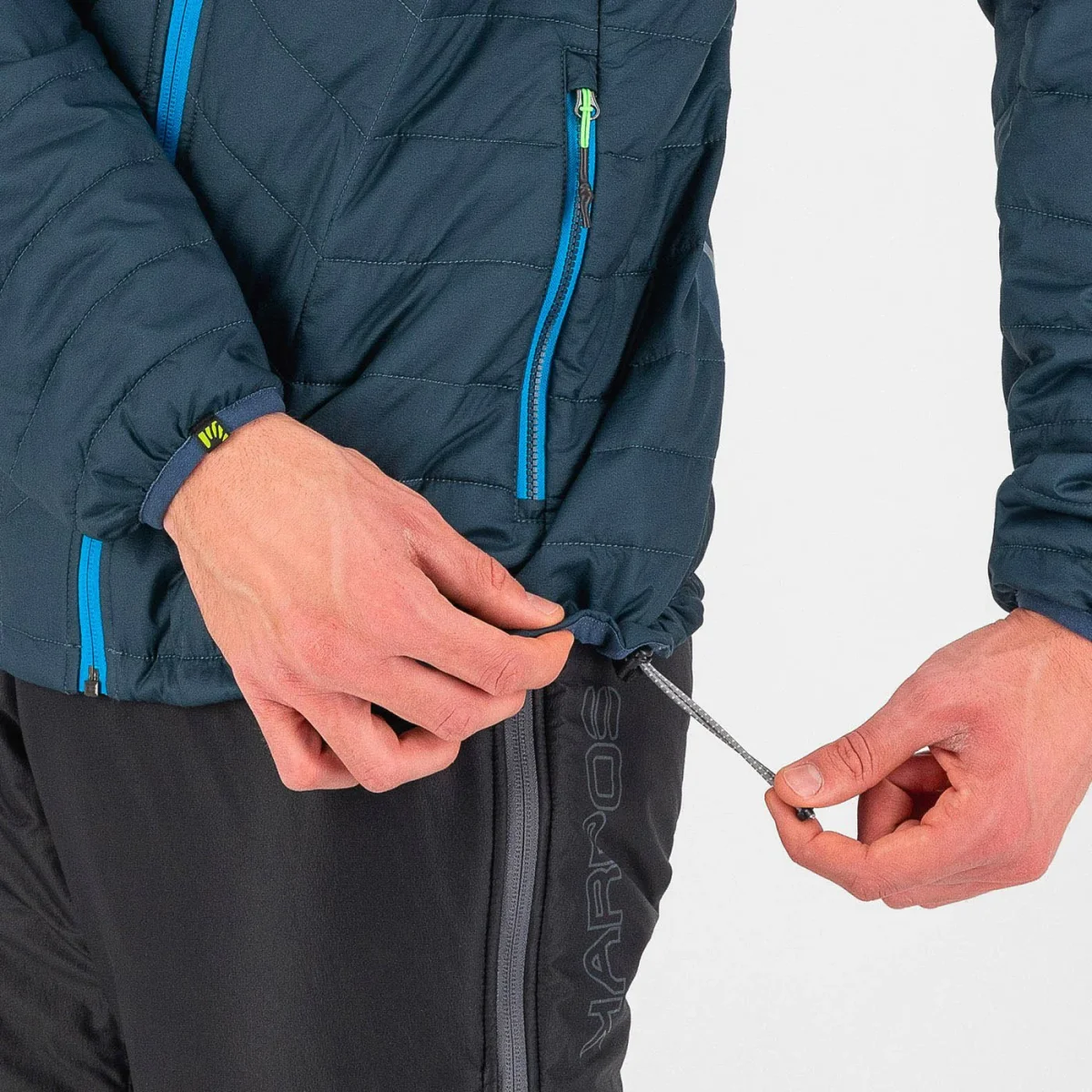 • Cordon de serrage réglable au bas du vêtement.